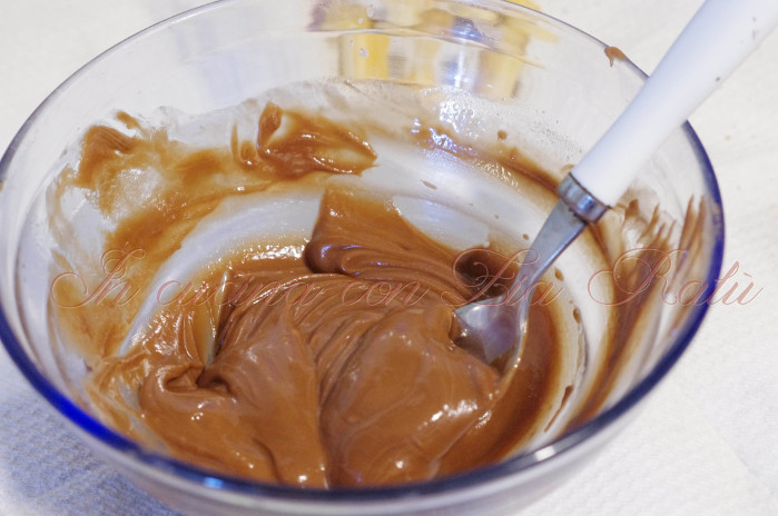 Per preparare i baci a modo mio bisogna innanzi tutto preparare la crema al cioccolato bianco.