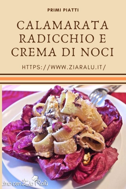 La calamarata radicchio e crema di noci è un primo piatto colorato che vi farà dimenticare di essere in inverno. Un piatto ricco di nutrimento e vitamine.