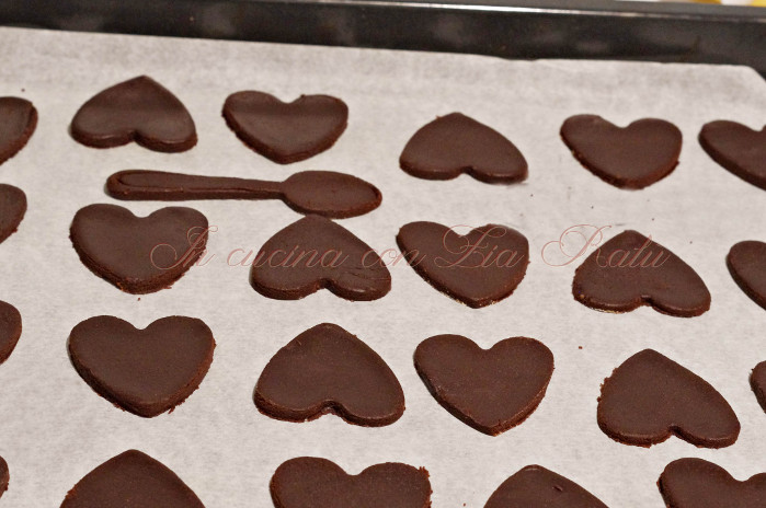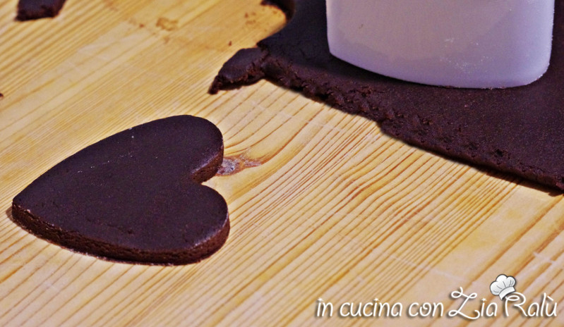 Prendete dei coppa pasta a forma di cuore e tagliate i biscotti che riuscite a tagliare.