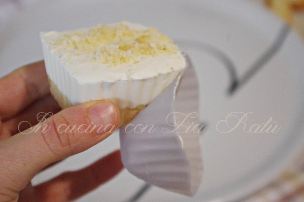 Operazione semplicissima in quanto gli stampi di silicone si tolgono con estrema facilità, basta staccare delicatamente un lato dello stampino che la mini cheesecacke sarà staccata.