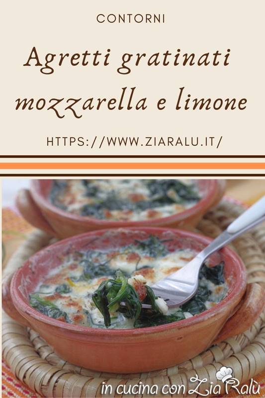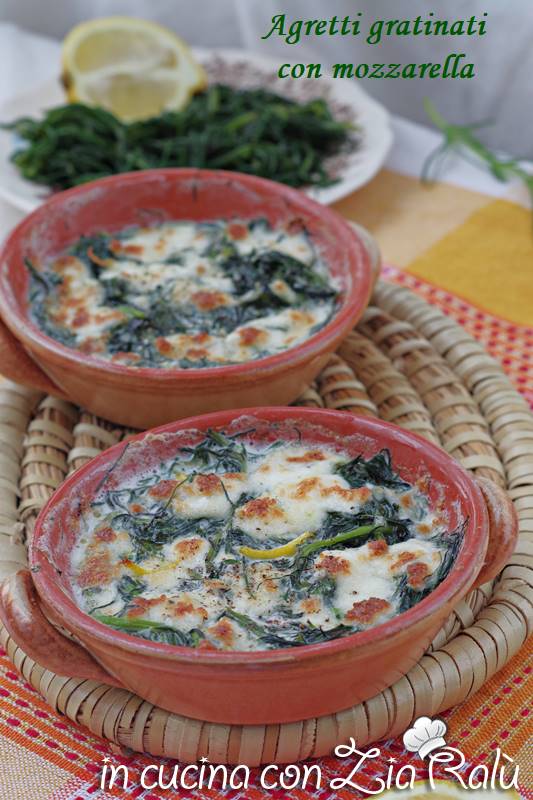 Gli agretti gratinati con la mozzarella e limone sono un contorno light, buono e gustoso, sano e ricco di vitamine e sali minerali. Il periodo in cui si trovano gli agretti è veramente limitato (Aprile Maggio a volte fino a metà Giugno) quindi bisogna approfittare per gustare queste verdure.