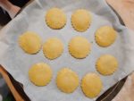 Devono essere con diametro l’uno 1 cm più largo dell’altro. Ricavate un cerchio più piccolo e uno più grande in modo da ottenere sempre 1 biscotto intero.