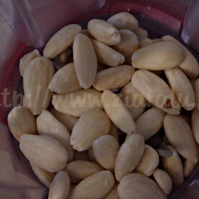 Frullate la zucca a cubetti con l’uovo poi aggiungeteli al burro e zucchero. Frullate anche le mandorle fino ad ottenere una farina.
