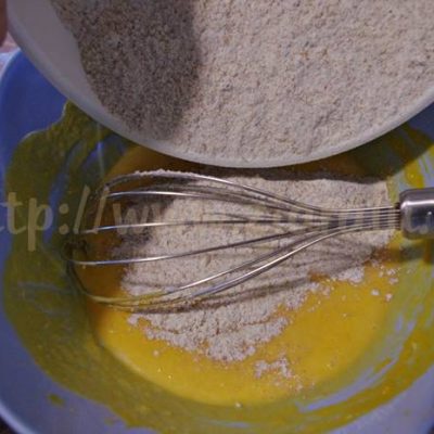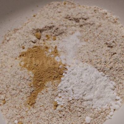 Setacciate la farina e mescolatela insieme al cucchiaino di zenzero, il lievito, la vanillina, e la farina di mandorle.