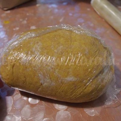 Fate ora una palla con la pasta ottenuta e foderatela con pellicola trasparente, mettete la pasta in frigo a riposare per 1 ora.
