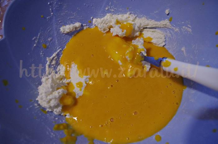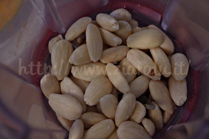 Frullate la zucca a cubetti con l’uovo poi aggiungeteli al burro e zucchero. Frullate anche le mandorle fino ad ottenere una farina.