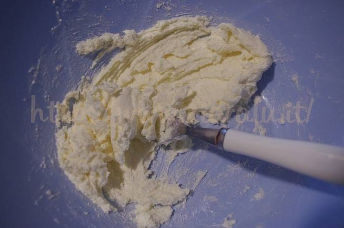 Mettete il burro in una ciotola insieme allo zucchero e lavorateli bene fino ad ottenere una massa chiara e spumosa.
