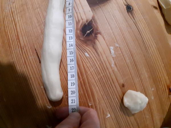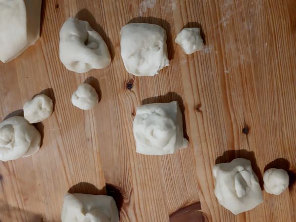 Prendete ogni pezzo di pasta e dividetelo in una parte più grande di circa 70 g e l’altra parte di circa 15 g.