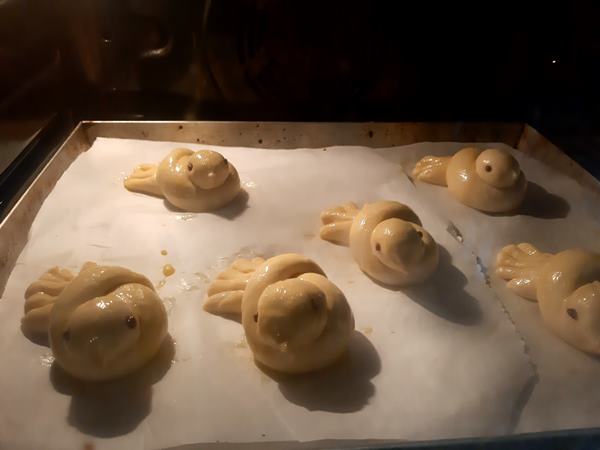 Sono molto semplici da preparare, soltanto che bisogna avere delle accortezze nell’assemblaggio delle colombine di brioche poiché se non si fissano bene le teste delle colombe esse cadranno durante la lievitazione o addirittura la cottura.