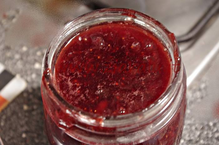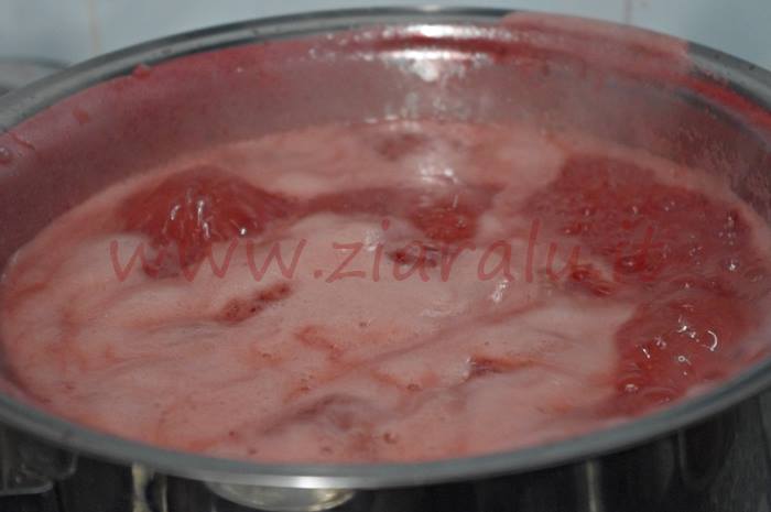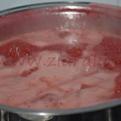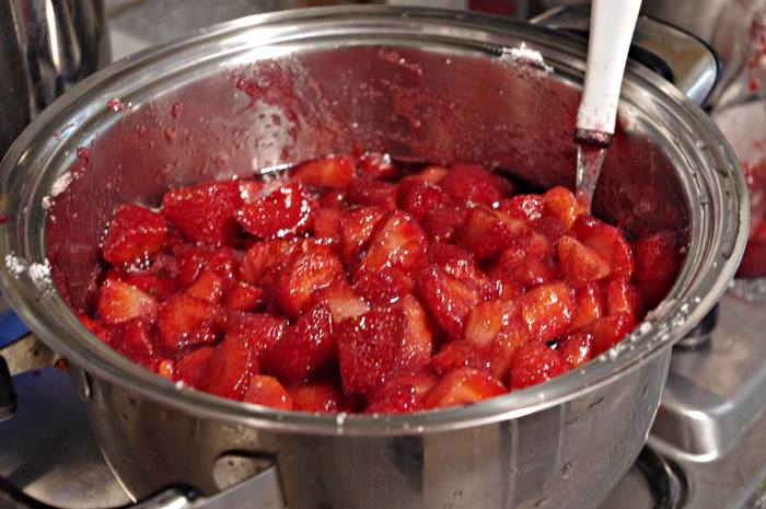 Preparazione della confettura fragole e succo di mirtilli