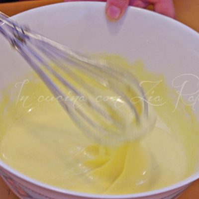 Preparate la cremaIn un tegame mettere a scaldare il latte con la buccia del limone. Intanto con una frusta sbattete bene i tuorli con lo zucchero, fino a che diventeranno chiari e gonfi. Aggiungete a questo punto l’amido di mais e mescolate bene. Quando il latte inizierà a bollire, togliete la pentola dal fuoco e con un cucchiaio aggiungete poco latte alle uova e farina sbattute e ammorbidite l’impasto. Versatelo poi nel tegame del latte e mescolate bene affinché la crema si sciolga nel latte. Rimettete la pentola sul fuoco e mescolate bene fino a che la crema non avrà raggiunto la giusta consistenza. Di solito ciò avviene poco dopo che il latte riprende a bollire. Lasciar raffreddare la crema in un piatto coperto con pellicola trasparente. |
