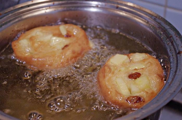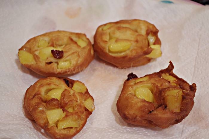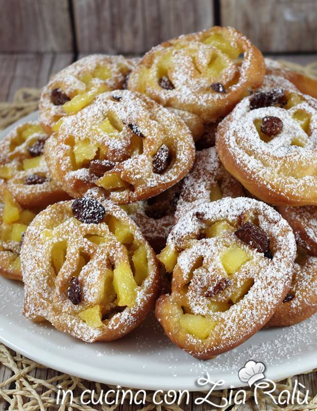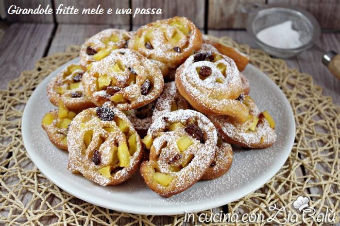 Ecco le vostre girandole fritte mele e uva passa pronte per essere gustate…Sono deliziose.