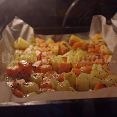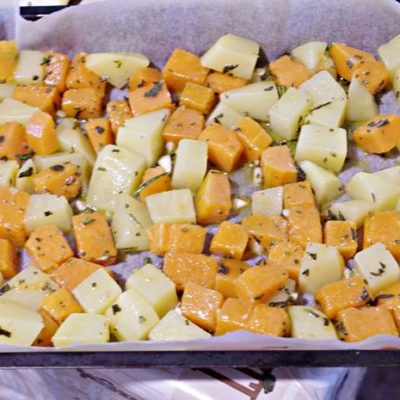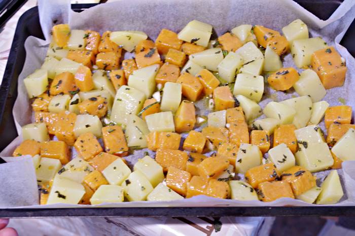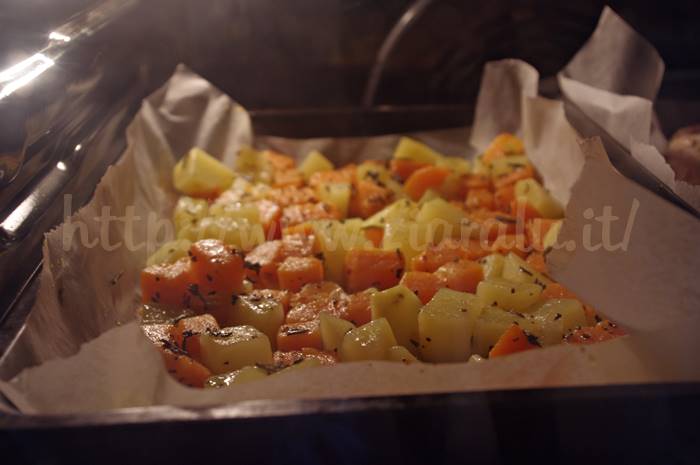 Preparare le patate e zucca al forno è semplicissimo ma richiede un po’ di tempo.