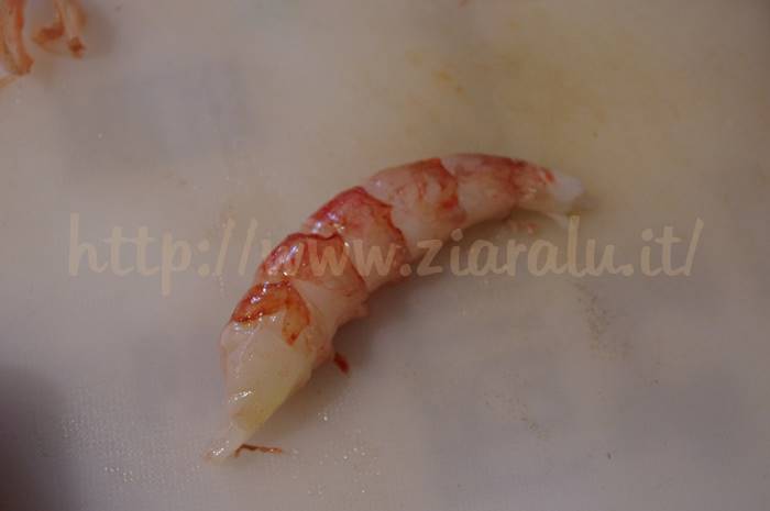 Rimuovete prima la testa, piegandola semplicemente e tirandola fino a staccarla. Togliere poi le zampe ed infine la corazza e staccarla dalla polpa, avendo cura di non romperla.