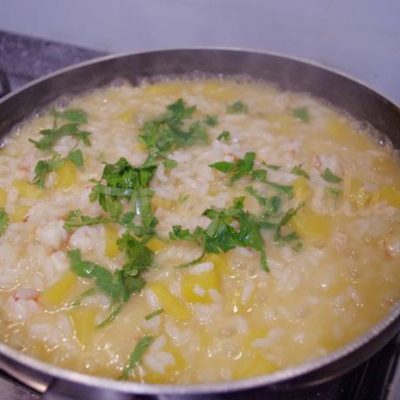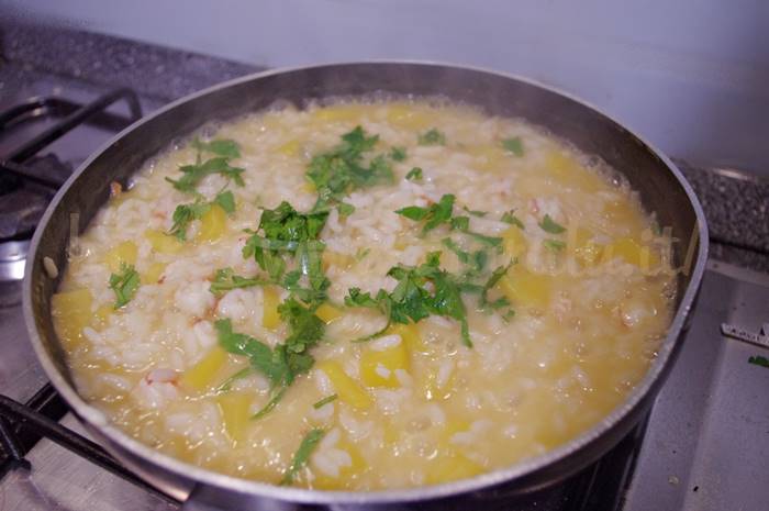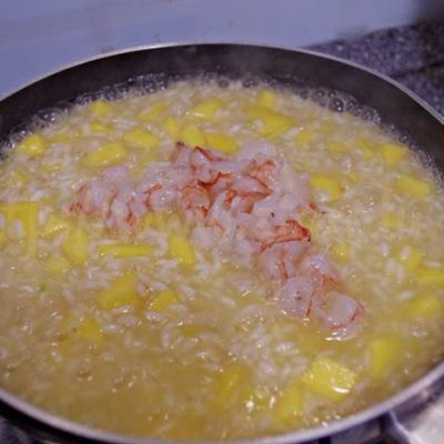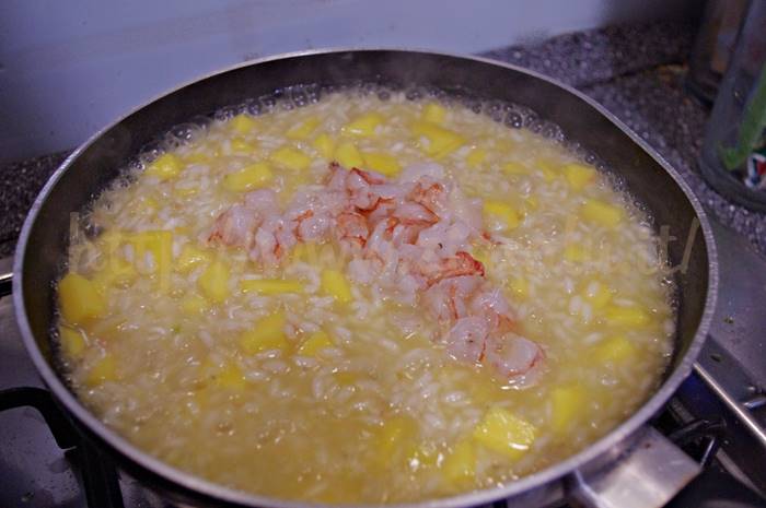 Ed ecco qua che il vostro risotto mango e gamberoni è pronto per essere servito.