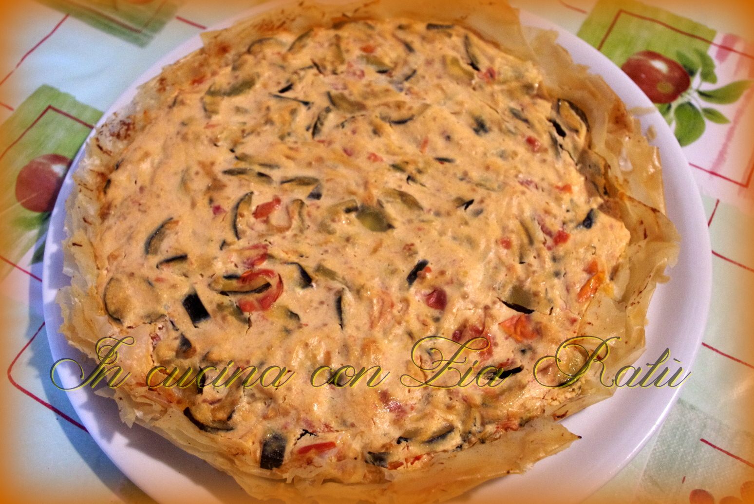 Torta salata di pasta fillo con zucchine e pomodorini